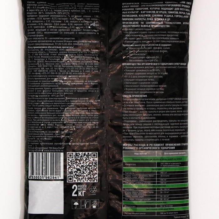 Удобрение органическое Bona Forte "СУПЕР Овощи" с цеолитом и аминокислотами, 2 кгВопросы по товару