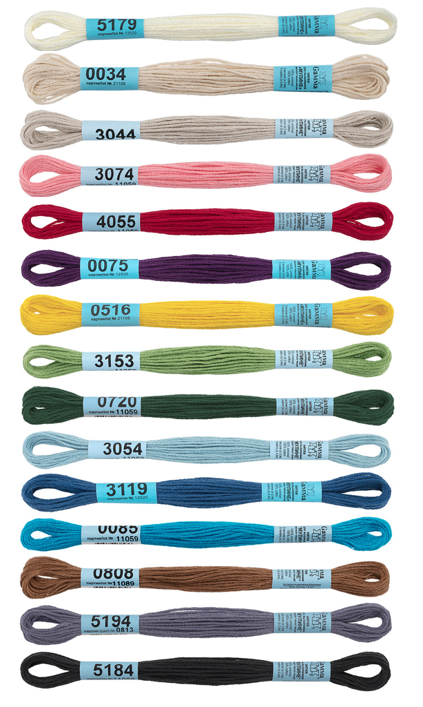 Нитки для вышивания "ПНК им. Кирова" мулине ассорти 100% хлопок 25 цв. x 10 м