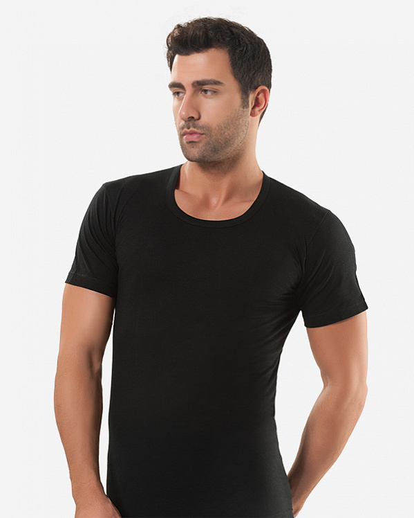 Базовая футболка Berrak черного цвета с коротким рукавом и круглым вырезом. Слегка приталенная. Футболка изготовлена из 100% хлопка.