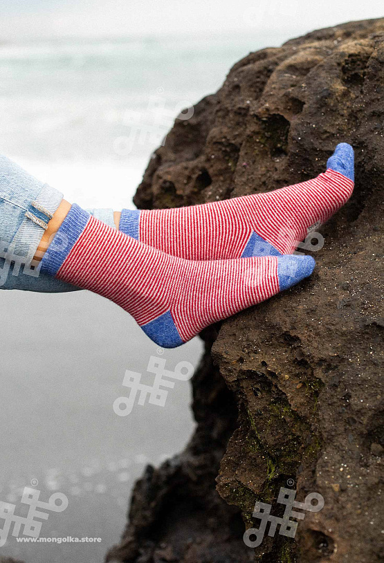 Носки из овечьей шерсти сохраняют ноги в тепле в любую погоду, при этом аккуратно смотрятся и плотно облегают стопу. В шерстяных носках ногам будет комфортно, ведь они хорошо фиксируются и не стесняют... Показать описание движение, приятные на ощупь и не колются. Носки из шерсти монгольской овцы износостойкие и будут радовать долгое время, связаны в технологии двойной вязки, а на подошве толщина материала увеличена. В составе носков 70% натуральной овечьей шерсти, которая обладает обезболивающими, противовоспалительными свойствами, из-за чего носки помогут при болях в суставах. Из-за свойств натуральной шерсти носки отводят лишнюю влагу и дарят чувство тепла и сухости в любую погоду. Теплые носки сочетаются с любым образом, поэтому в них будет приятно ходить как дома, так и надевать с зимней обувью. Носки подойдут как мужчинам, так и женщинам и станут приятным подарком для близких. В нашем ассортименте вы найдете еще больше товаров из натуральной шерсти, доставленных напрямую из Монголии. * Производитель: Монголия, TOD * Состав: 70% шерсть монгольской овцы, 30% вискоза * Размер: 34-45 * Цвет: красный, синий * Полноразмерные, соответствуют размеру обуви * Укрепленная стопа