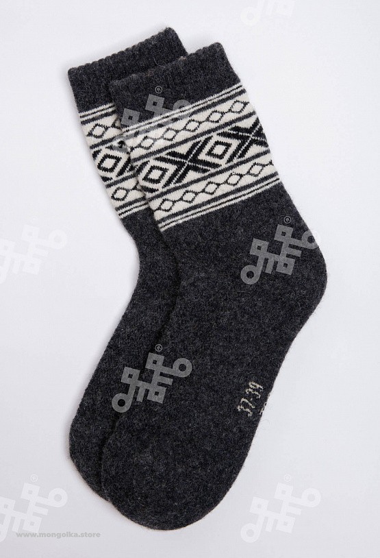 Носки из 100% натуральной шерсти монгольской овцы подарят ногам тепло и уют. Теплые носки плотно облегают стопу, хорошо фиксируются и не спадают при носке. На подошве используется технология двойной в... Показать описаниеязки, благодаря которой носки прослужат и согреют вас долгое время. В составе носков 100% натуральной овечьей шерсти, которая обладает обезболивающими, антибактериальными, противовоспалительными свойствами, из-за чего носки помогут при болях в суставах и усилят микроциркуляцию крови. Благодаря свойствам натуральной шерсти носки отводят лишнюю влагу и подарят чувство тепла и сухости в любую погоду. Шерстяные носки хорошо сочетаются с любым образом, поэтому в них будет приятно ходить как дома, так и надевать с зимней обувью. Носки подойдут как мужчинам, так и женщинам и станут приятным подарком для близких. В нашем ассортименте вы найдете еще больше товаров из натуральной шерсти, доставленных напрямую из Монголии. * Производитель: Монголия, TOD * Состав: 100% шерсть * Размер: 34-45 * Цвет: серый с рисунком * Полноразмерные, соответствуют размеру обуви * Укрепленная стопа