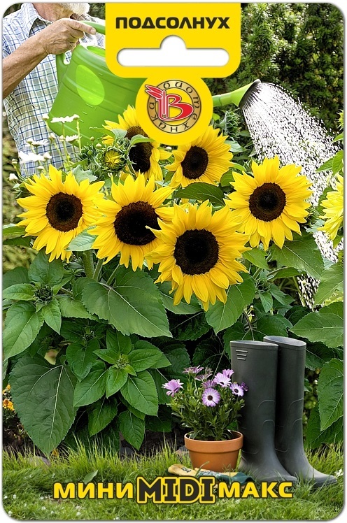 Подсолнух с естественно ограниченным ростом. Специальная селекция для выращивания в горшках и контейнерах объемом от 5 до 10 литров. Растение сильное, но компактное, с короткими междоузлиями, высотой ... Показать описание30-35 см. Диаметр соцветия на основном стебле 18-20 см, на боковых 12-14 см. Раннее зацветание, всего через 9-10 недель. Очень долго сохраняет декоративность. После отцветания и срезки центрального соцветия, по очереди формируется еще 6-8 боковых соцветий. Очень хорошо подходит для выращивания на клумбах, особенно в групповых посадках. Прорастание: 6-8 дней при 18-20_С Рассада: 5-6 недель при 14-16 _С Высадка рассады: апрель-май Начало цветения: на 9-10 неделе Не злоупотреблять подкормками. Возможно выращивание без рассады, прямым посевом семян на постоянное место. Для получения компактного растения необходимо использовать горшки объемом не более 10 литров, грунт должен быть суглинистым, обедненным.