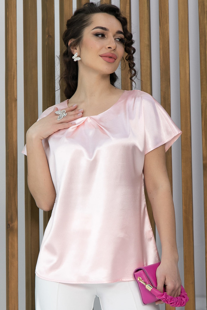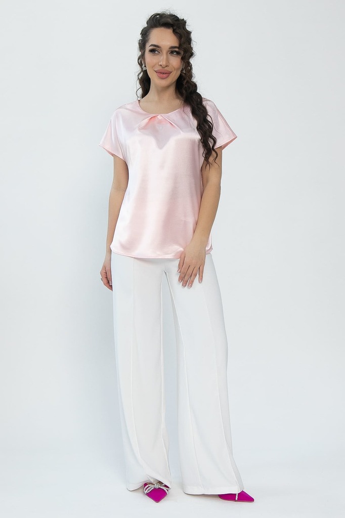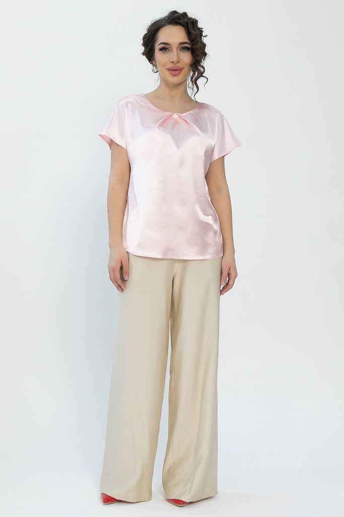 Состав: 95% полиэстер, 5% эластан. Материал: блузочный (сатин-стрейч). Цвет: розовый. Принт: отсутствует. Силуэт: прямой. Карманы: отсутствуют. Подкладка: отсутствует. Вид застежки: без... Показать описание застёжки. Декоративные элементы: защип на груди. Длина: 44-48/ 64 см, 50-54/ 65 см. Блузка отснята с белыми брюками арт.Б12685-13 и с бежевыми брюками из костюма арт.К13591-30М Легкая блуза прямого кроя в нежном розовом оттенке. Модель имеет короткий рукав и глубокий защип на груди, что придает модели изящность и нежность. Такая блуза актуальна как для офиса, праздничных мероприятий, так и для романтических встреч. Нежная и воздушная блуза станет отличным дополнением к до сих пор актуальным брюкам палаццо. Кроме того, именно такая модель блузы хороша в дополнение к деловому костюму. Уход за изделием: ручная стирка до 30 градусов; нельзя отбеливать; отжим запрещён; гладить при t не более 110 С; гладить с изнанки. Внимание! Рекомендуем ориентироваться на размерную сетку и выбирать свой привычный размер, согласно размерной таблице. *Допуск отклонения длины при массовом производстве 1-3 см является нормой.