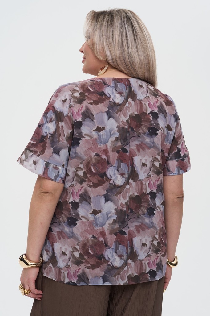 Состав: 55% Вискоза 45% Полиэстер. Элегантная блузка из качественной, шелковистой, приятной к телу струящейся ткани. Однотонная блузка основа для классических образов современных женщин, которая прекр... Показать описаниеасно подходит для создания как повседневного, так и коктейльного образа. Прямой силуэт придаёт уверенность и комфорт в каждом движении. V- образный вырез горловины. Рукава короткие придают блузке легкость и изящность. По боковым швам разрезы. Параметры модели: Ог – 112 см, От - 94 см, Об – 120 см. Рост – 174 см. Размер на модели: 54. Подробное описание: https://www.intikoma.ru/catalog/osen-zima-2025-26/61205/