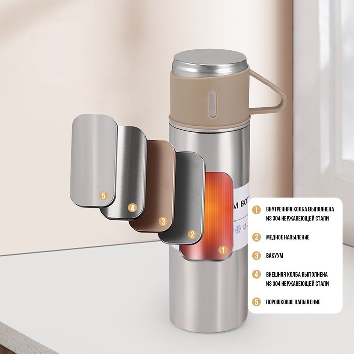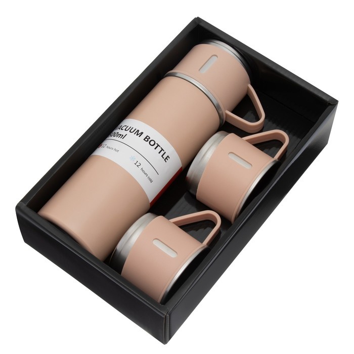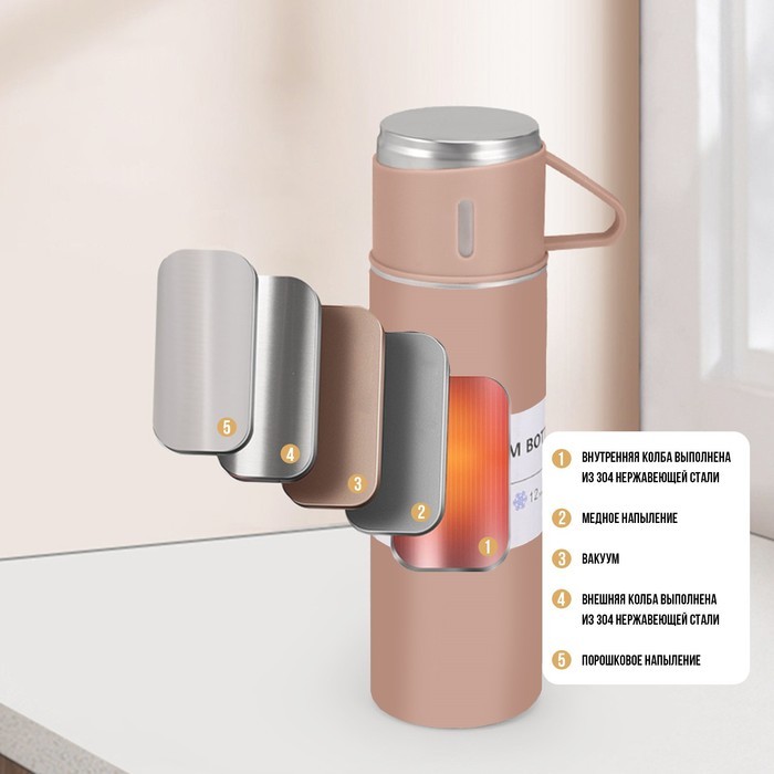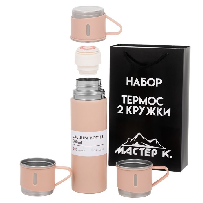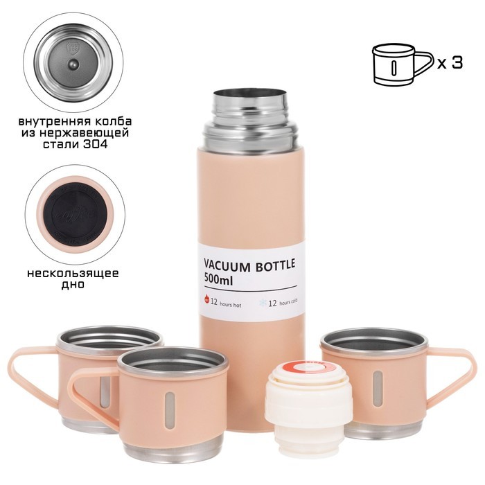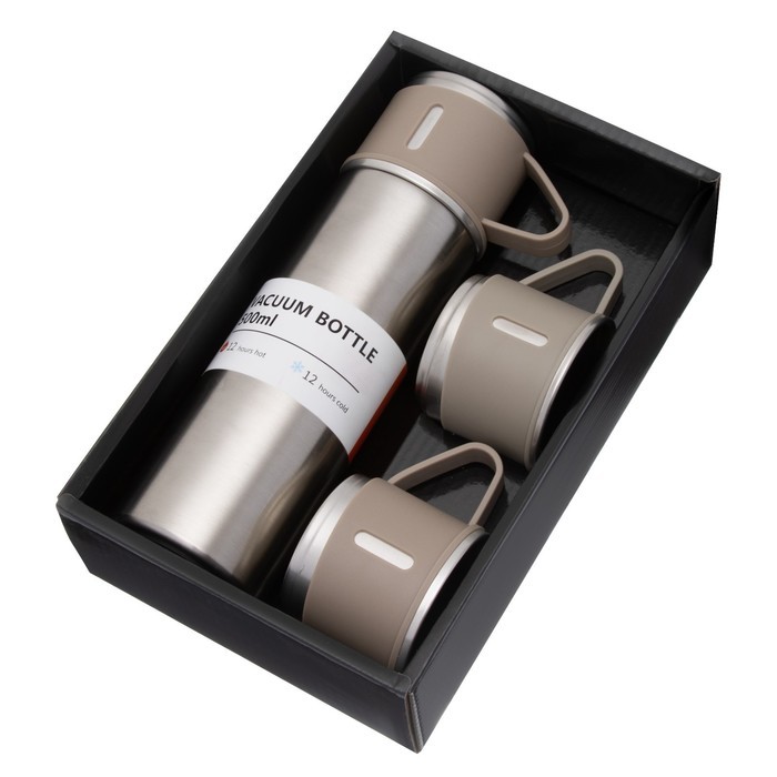 Набор «Мастер К», термос 500 мл и 3 кружки 160 мл, сохраняет тепло 12 ч, нержавеющая сталь, бежевыйВопросы по товару
