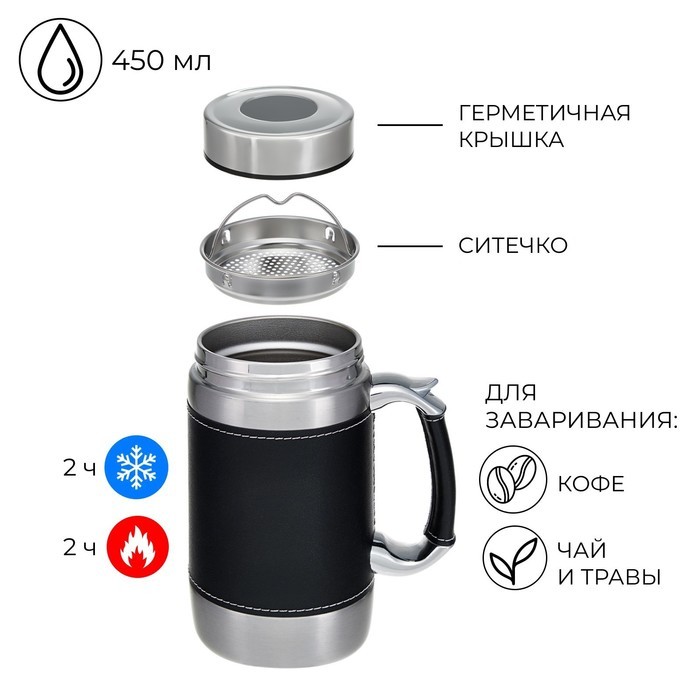 Термокружка «Кофе», 380 мл, сохраняет тепло 8 ч, с ситечкомВопросы по товару