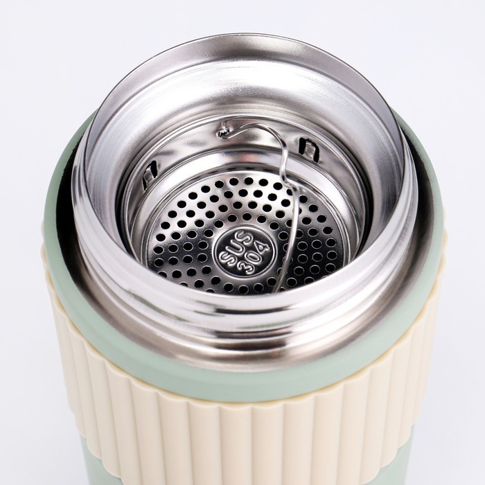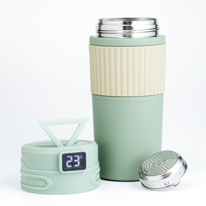 Термокружка TAKE IT EASY New design, 400 мл, сохраняет тепло 12 ч, термометр, сито, нержавеющая сталь, зелёныйВопросы по товару