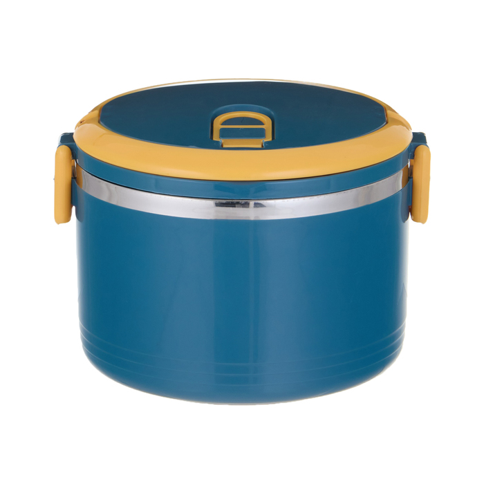 Ланч-бокс - это ручной контейнер для пищевых продуктов, используемый для транспортировки еды. Этот стильный и функциональный аксессуар станет незаменимым помощником в повседневной жизни. Среди разнооб... Показать описаниеразия термопосуды ланч-бокс из металлической основы внутри - одна из популярных и универсальных моделей. Ланч-бокс из нержавеющей стали в пластиковом корпусе не содержит вредных веществ и безопасен для здоровья. Особенностью этого ланч-бокса является то, что он состоит из двух отдельных контейнеров. Это очень удобно, так как вы можете взять с собой два разных блюда или разделить одно блюдо на две порции. Между собой секции собираются как "конструктор" через защелки. Благодаря плотно закрывающейся крышке и специальным зажимам, контейнер надежно сохраняет свежесть и аромат ваших блюд, предотвращая протекание и рассыпание. Легкий и компактный размер, позволяет удобно разместить ланч-бокс в сумке или рюкзаке, а приятный синий цвет с голубыми элементами добавит красок в ваш день. Имеется ручка для переноски. Контейнер отлично подходит для любых типов пищи, включая супы, вторые блюда, салаты и десерты. Обеспечивает надёжное сохранение температуры пищи в течение двух часов. Это позволит вам наслаждаться горячими блюдами даже спустя некоторое время после их приготовления, сохраняя их вкусовые качества и полезные свойства. Посуда имеет силиконовую вставку по периметру крышки и клапан, которые обеспечивают герметичность отделения. Клапан на крышке служит для выпуска пара для более легкого открытия контейнера после нахождения в нем горячей пищи. Сфера применения контейнеров в быту разнообразна, их приспосабливают для различных целей, например, для хранения продуктов в холодильнике или организации порядка на кухне. Многоразовый вместительный контейнер с крышкой можно брать с собой на работу и на пикник, на дачу и в школу. Благодаря своей функциональности, удобству использования и стильному дизайну, он станет вашим верным спутником в мире здорового образа жизни и правильного питания. Отличный подарок не только для себя, но и для близких, которые ценят комфорт и практичность в повседневной жизни. Забудьте о неудобных одноразовых упаковках, выберите долговечный и многофункциональный ланч бокс. Балуйте себя и своих близких домашними деликатесами, а термопосуда поможет дольше сохранить вкус и качество продуктов. Перед первым использованием необходимо тщательно вымыть в теплой воде и вытереть насухо. * Высота ланч-бокс - 17.5 см, диаметр - 11.2 см, диаметр внутренний - 10.2 см. * Высота меньшей чаши 5.7 см, глубина - 3.7 см. * Высота большей чаши - 9.3 см, глубина - 7 см. Комплектация Крышка - 1 шт. Контейнер - 2 шт. Дополнительно * Объем верхнего отсека 250 мл * Объем нижнего отсека 500 мл *указан литраж полезного объема