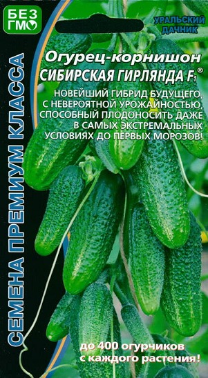 Новейший гибрид будущего, который поразил селекционеров всего мира своей невероятной урожайностью, способностью плодоносить даже в самых экстремальных условиях – до первых морозов. Вид гибрида «в дейс... Показать описаниетвии» завораживает: плети, словно новогодняя гирлянда, сплошь увешаны множеством маленьких, словно на подбор, огурчиков, собранных в пучок – сочных, хрустящих, ароматных, невероятно сладких. Скороспелый, самоопыляемый гибрид букетного типа, зеленцы 5-8 см, не перерастают, великолепны в засолке, без пустот и горечи... Можно продолжать до бесконечности! Обязательно попробуйте сами! Посадив «Гирлянду» лишь раз, она станет самой популярной на вашей грядке!