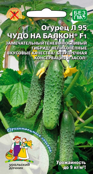 Огурец для балконов, лоджий и подоконников. Уникальный гибрид огурца, который прекрасно растёт на балконах, лоджиях, подоконниках. Самоопыляемый, раннеспелый, теневыносливый. Порадует первыми огурчика... Показать описаниеми уже на 25-30 день после всходов, причём не одним-двумя, а массово. Это позволит всегда иметь на своём столе ароматные огурчики не только летом, но и зимне-весенний период. Огурцы выращивают, высевая семенами в грунт, или через рассаду. Для получения рассады семена высевают в конце марта - начале апреля, на глубину 1-2 см, при температуре 25 °C. Рассаду высаживают в грунт, когда минует угроза заморозков. Семенами огурец высевают в прогретую до 14-15 °C почву, в конце мая. Глубина заделки 1-1,5 см. Посевы укрывают плёнкой. Схема посадки 60 х 15 см. Для отличных урожаев необходим полив тёплой водой, подкормки раз в 2 недели, прополки, рыхление. Нерегулярный сбор плодов снижает урожайность.