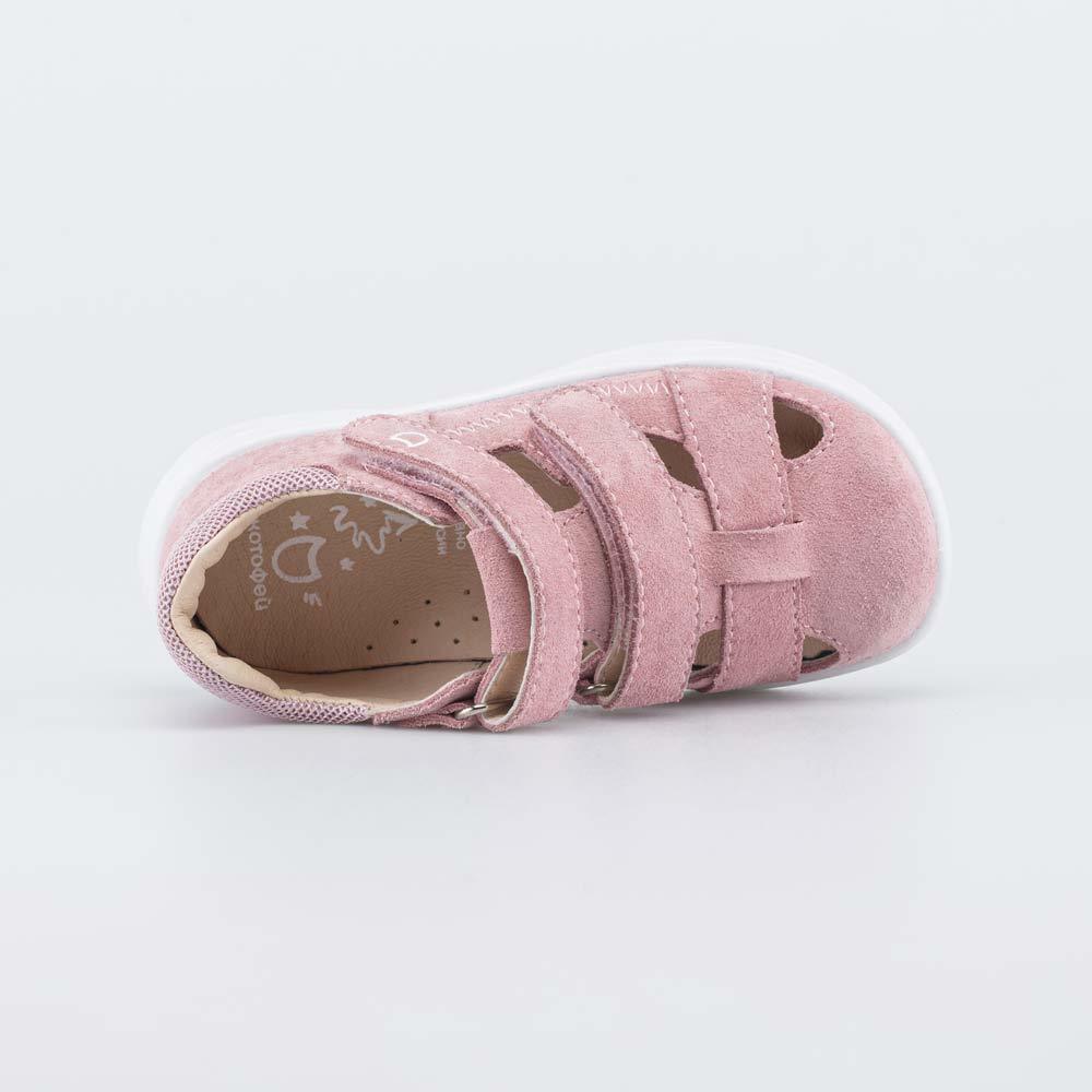 Описание Описание модели Кожаные сандалии отлично подходят как для прогулок, так и в качестве сменной обуви в детский сад. Верх розовых сандалий выполнен из натуральной кожи-велюра. Подкладка и съемна... Показать описаниея стелька изготовлены из белой натуральной кожи – не придется переживать, что детская обувь окрасит носочки или колготки. Детские сандалии на липучках надежно фиксируются на ножках, в них удобно обуваться и разуваться. Белая подошва из легкого и гибкого ПУ (полиуретана) хорошо амортизирует и не оставляет следов на полу. Модель анатомически-правильная: - пяточная часть приподнята, - закрытый носок защищает пальчики от случайных ударов, - задник необходимой жесткости поддерживает пятку во время движений, - мягкий подсводник обеспечивает профилактику плоскостопия. Сделано в России.