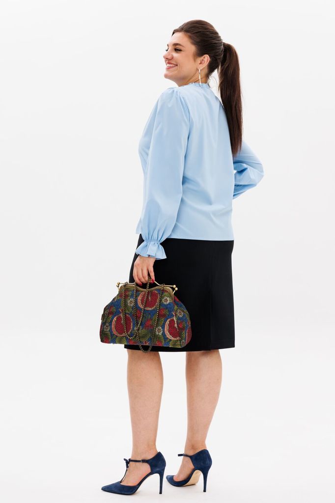 Состав: Вискоза-40%; ПЭ-55%; Спандекс-5%; Эта эффектная блуза прямого силуэта станет незаменимым элементом вашего гардероба. Передняя часть блузы оснащена средним швом, который формирует элегантный вы... Показать описаниерез-щель, дополненный сборкой по плечевому шву для создания изысканного образа. Длинные втачные рукава свободного кроя украшены сборкой по низу и декоративными завязками, добавляя нотку игривости и оригинальности. Воротник-стойка, отделанный бархатной тесьмой, придает блузе особый шарм и утонченность. Этот великолепный вариант идеально подходит как для повседневной носки, так и для выхода в свет, позволяя вам выглядеть стильно и уверенно в любой ситуации. На модели брюки 1416.1 и юбка 1438.1. Замеры: Размер 44: ОГ-100; ОБ-100; ОП-34; ДИ-62; ДР-63; Размер 46: ОГ-106; ОБ-106; ОП-34; ДИ-61; ДР-63; Размер 48: ОГ-110; ОБ-110; ОП-36; ДИ-61; ДР-64; Размер 50: ОГ-114; ОБ-114; ОП-37; ДИ-61; ДР-65; Размер 52: ОГ-118; ОБ-118; ОП-38; ДИ-61; ДР-65; Размер 54: ОГ-124; ОБ-124; ОП-40; ДИ-62; ДР-65;