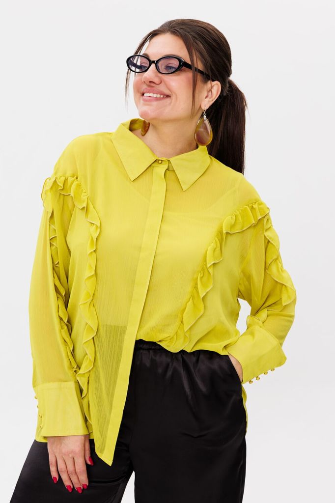 Состав: Блуза: Вискоза-29%; ПЭ-71%; Топ: Хлопок-95%; Эластан-5%; Изысканную блуза от Анелли, которая станет настоящим акцентом в вашем гардеробе. Спереди она украшена рельефами и нежными рюшами, что п... Показать описаниеридает ей романтичный и утонченный вид. Потайная планка на пуговицах обеспечивает аккуратность и элегантность. Спинка также оформлена рельефами и рюшами, создавая гармоничный образ с передней частью. Фигурный низ, достигающий середины бедра, добавляет динамики и оригинальности, а длинные рукава с зауженными манжетами подчеркивают стильный силуэт. Декоративные рюши по всей длине рукава добавляют нотку игривости и женственности. Классический рубашечный воротник на стойке завершает образ, придавая ему элегантность. Ее прозрачная текстура придает образу загадочности и элегантности, а в комплекте с топом на бретелях создает стильный и аккуратный вид. Такой ансамбль позволит вам выглядеть модно и уместно, подчеркивая вашу индивидуальность. На модели брюки 1425.1. Замеры: Размер 54: Блуза: ОГ-132; ОБ-132; ОП-46; ДИ-74; ДР-56; ШП-16.5; Топ: ОГ-114; ОБ-122; ДИ по боку - 37; Размер 56: Блуза: ОГ-136; ОБ-136; ОП-48; ДИ-74; ДР-56; ШП-17; Топ: ОГ-118; ОБ-126; ДИ по боку - 37; Размер 58: Блуза: ОГ-140; ОБ-140; ОП-50; ДИ-74; ДР-57; ШП-17.5; Топ: ОГ-122; ОБ-130; ДИ по боку - 38; Размер 60: Блуза: ОГ-144; ОБ-144; ОП-50; ДИ-75; ДР-57; ШП-18; Топ: ОГ-126; ОБ-134; ДИ по боку - 38;