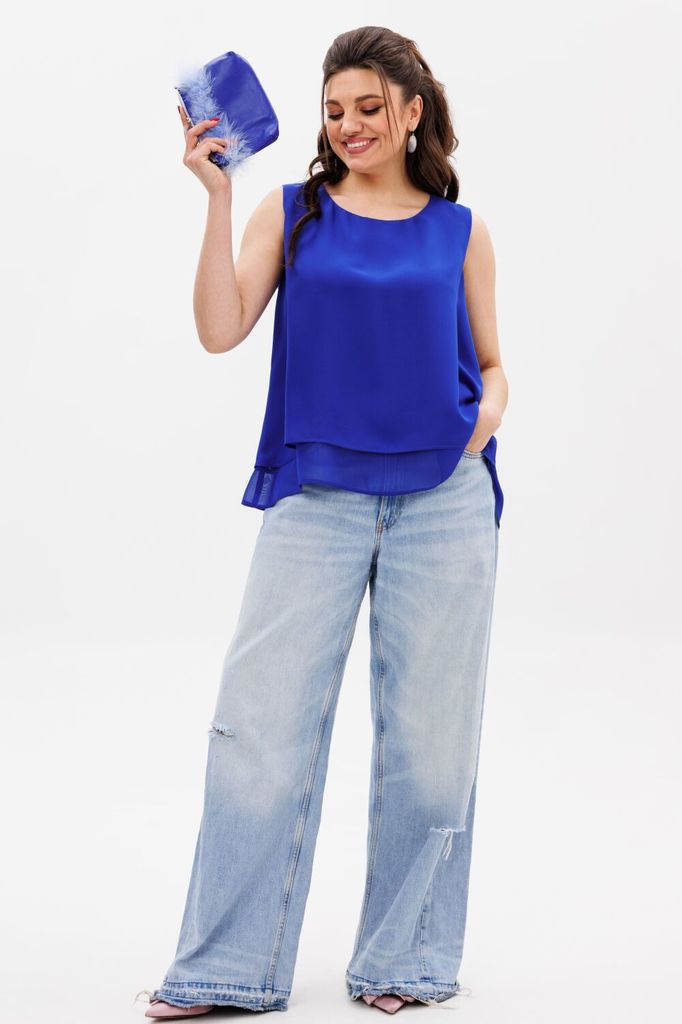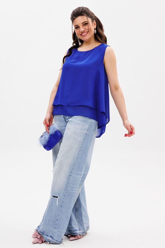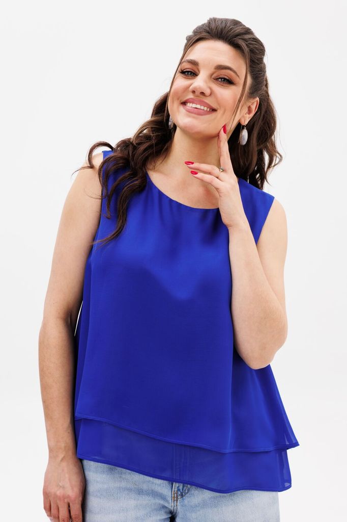 Состав: Вискоза-45%; ПЭ-35%; Нейлон-20%; Добавьте ярких красок в свой гардероб с этой  шифоновой блузой! Его свободный силуэт и умеренный объем создают комфорт и легкость, а асимметричная линия низа д... Показать описаниеобавляет образу динамики и современности. Особенность этой модели — двойной слой ткани: укороченный верхний слой спереди создает эффект изящных ярусов, а удлиненная спинка придает топу оригинальность и легкость. Круглый вырез горловины подчеркивает женственность, а отсутствие рукавов делает эту блузу идеальной для теплых дней. Подарите себе настроение и легкость с этой невероятной моделью! Замеры: Размер 44: ОГ-98; ОБ-134; ДИ-69; Размер 46: ОГ-102; ОБ-138; ДИ-70; Размер 48: ОГ-106; ОБ-142; ДИ-70; Размер 50: ОГ-110; ОБ-146; ДИ-70; Размер 52: ОГ-114; ОБ-150; ДИ-70;2;