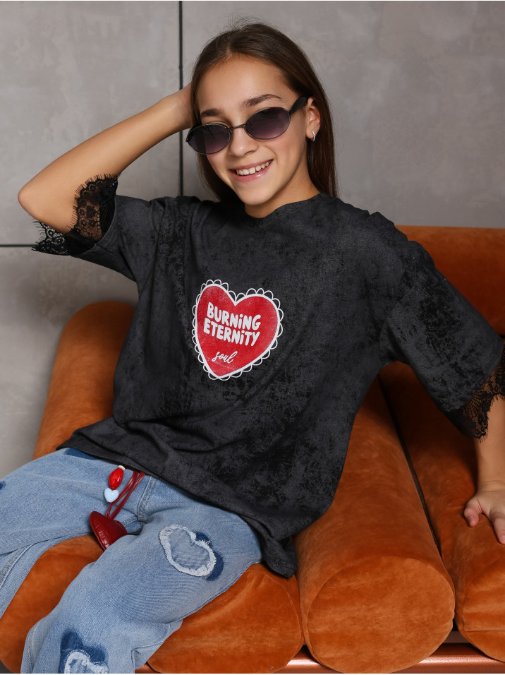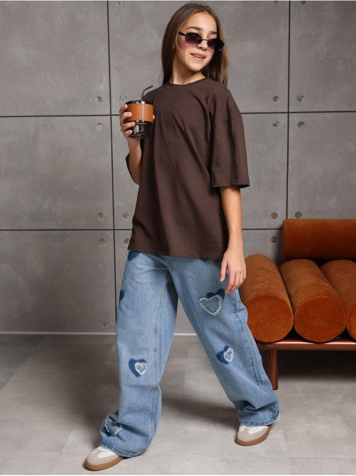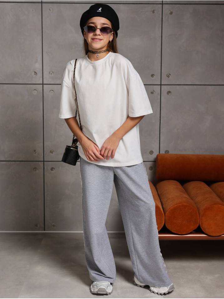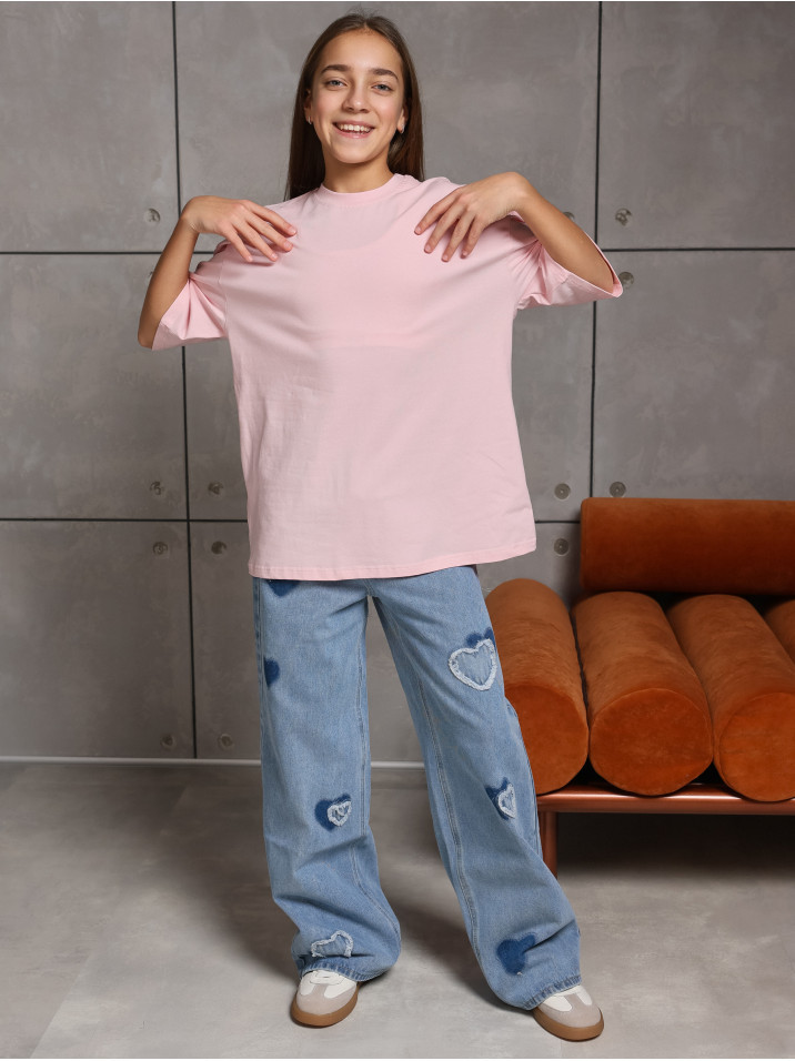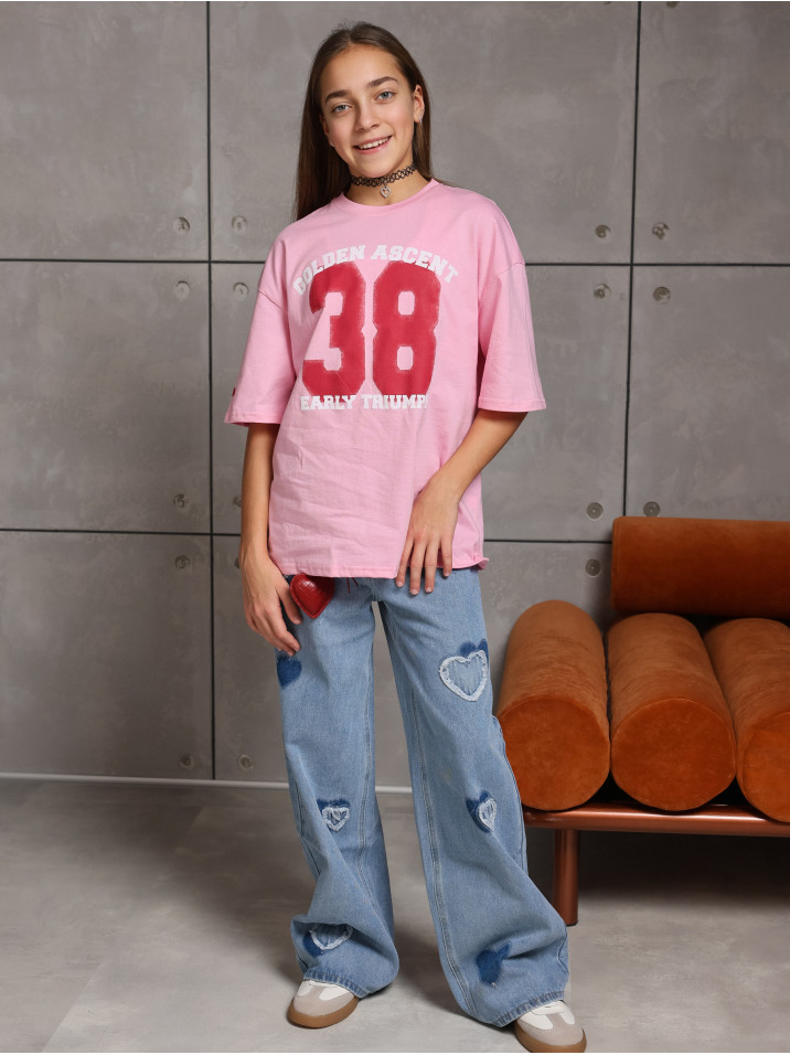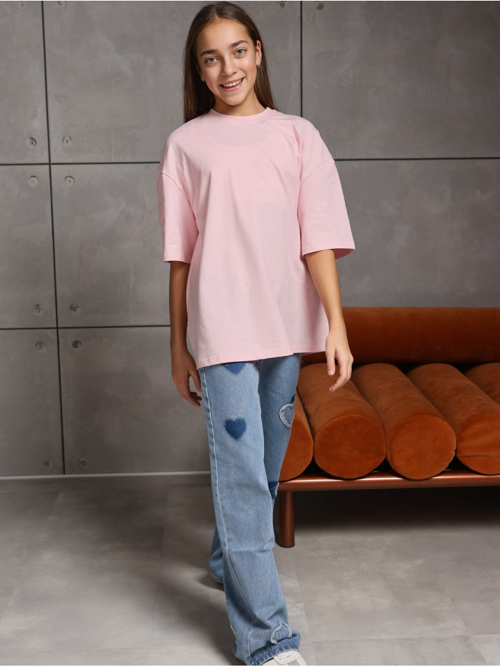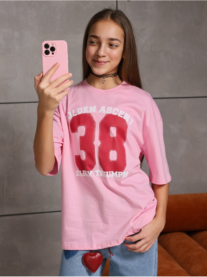 Краткое описание Стильная футболка для девочки с современным принтом в стиле оверсайз. Широкий размерный ряд охватывает разные возраста детей от дошкольников до школьников подростков или на возраст 6,... Показать описание 7, 8, 9, 10, 11, 12, 13 и 14 лет. Футболка классического прямого кроя с короткими рукавами и круглым вырезом горловины. Детская футболка на каждый день на прогулку, дачу, в садик, для дома, в школу. Удобная длина позволяет носить футболку заправленной и навыпуск . Отлично сочетается с шортами, джинсами, брюками, юбками. Модная хлопковая футболка, материал приятен на ощупь, позволяет телу дышать, при бережном уходе не дает усадку и не деформируется. Отличный подарок для девочки на день рождения и без повода.