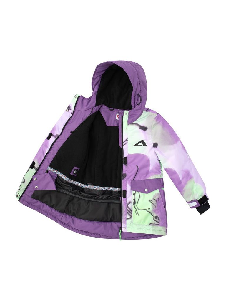 Зимняя куртка для девочек Амарина создана для надежной защиты от холода, ветра и снега. Ткань верха выполнена из 100% полиэстера с грязе-водоотталкивающим покрытием TEFLON DuPont. Она способна защитит... Показать описаниеь от снега, дождя, грязи и других неблагоприятных погодных условий. Благодаря паропроницаемости 10.000 г/м2/24ч и водонепроницаемости 10.000 мм, она позволяет коже дышать, не создавая дискомфортных ощущений. Утеплитель HOLLOFAN PRO 200г/м2 защитит от холодного воздуха. Он обладает высокой плотностью и при этом не перегревает тело. Подкладка флисовая, приятная на ощупь и не вызывающая аллергии. Капюшон куртки несъемный, имеет регулировку объема, значительно улучшающую сохранение тепла. Ветрозащитная планка по всей длине молнии с защитой подбородка помогает защитить от проникания ветра и снега. Низ рукавов дополнительно утягивается с помощью паты на липучке, а внутренние манжеты из эластичного бифлекса обеспечивают плотное прилегание к телу, а также имеют отверстия для большого пальца. Куртка имеет большие накладные теплые карманы с клапаном, в которых можно разместить необходимые вещи. Снего-ветрозащитная юбка с антискользящей резинкой защищает от попадания снега и задувания ветра. Также в куртке есть крепления для лямок полусброса в помещении (лямки в комплект не входят и продаются отдельно). Регулируемая внутренняя утяжка по талии позволяет подогнать куртку под индивидуальные параметры. Световозвращающие элементы увеличивают безопасность при низкой видимости. Стильная и красивая куртка для девочки, привлекательный дизайн и высокое качество материалов будут радовать молодых модниц на протяжении всей зимы. Температурный режим: от +5°C до -30°C * Ткань верха: 100% полиэстер. * Паропроницаемость 10.000 г/м2/24ч * Водонепроницаемость 10.000 мм. * Грязе-водоотталкивающее покрытие TEFLON DuPont. * Утеплитель HOLLOFAN PRO 200г/м2 * Подкладка - флис, 100% полиэстер. * Капюшон несъемный с регулировкой объема. * Ветрозащитная планка по всей длине молнии с защитой подбородка. * Воротник слитный с капюшоном. * Низ рукава на резинке с дополнительной утяжкой на пату с липучкой. * Внутренние манжеты из эластичного бифлекса с отверстием для большого пальца. * Большие накладные теплые карманы с клапаном. * Снего-ветрозащитная юбка с антискользящей резинкой. * Крепления для лямок полусброса. * Регулируемая внутренняя утяжка по талии. * Световозвращающие элементы. Подробное описание: https://oldos-shop.ru/catalog-detail/kurtka_ddev_amarina_grozovoe_nebo_fuksiia/4640105227818/