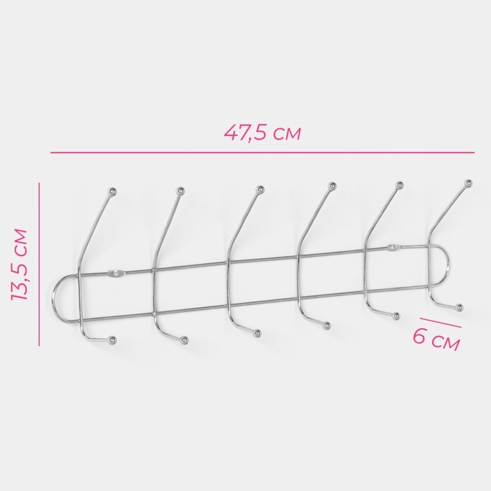 Вешалка настенная Доляна «Блеск», 6 двойных крючков, 47.5?13.5?6 см, хромированная Вопросы по товару