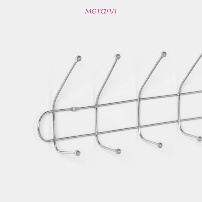 Вешалка настенная Доляна «Блеск», 6 двойных крючков, 47.5?13.5?6 см, хромированная