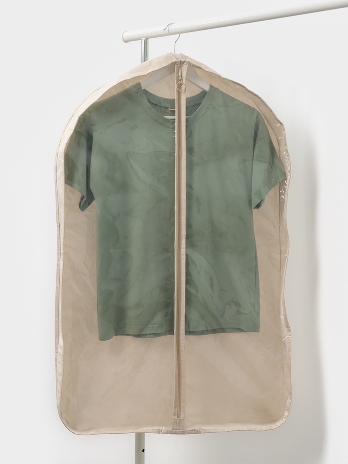 Чехол для хранения одежды на молнии — это практичное решение для защиты вещей от пыли, влаги и повреждений. Изделие выполнено в нейтральном бежевом оттенке, который легко впишется в интерьер шкафа или... Показать описание гардеробной. Прочный флизелиновый материал обеспечивает долговечность и сохраняет форму даже при длительном использовании. Особенности * Удобный размер 90?60 см подходит для хранения пальто, курток, костюмов и других вещей. * Молния по всей длине обеспечивает лёгкий доступ к содержимому и надёжную защиту. * Флизелин — лёгкий, но плотный материал, который не мнётся и не рвётся. * Чехол сохраняет вещи в идеальном состоянии, предотвращая появление пыли и влаги. * Компактно складывается для хранения в шкафу или на полке. Почему этот чехол — must-have для гардероба? Чехол для одежды — это не просто аксессуар, а необходимость для тех, кто ценит порядок и заботится о своих вещах. Он подходит для сезонного хранения, поездок или организации пространства в шкафу. Благодаря универсальному дизайну и функциональности, изделие станет незаменимым помощником в поддержании чистоты и аккуратности вашего гардероба. Комплектация * Чехол для одежды - 1 шт.