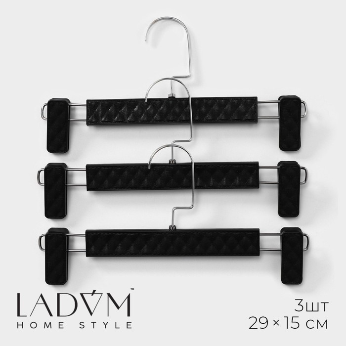 Вешалки для брюк и юбок LaDо?m Eliot, 29?15 см, 3 шт., с зажимами, чёрные