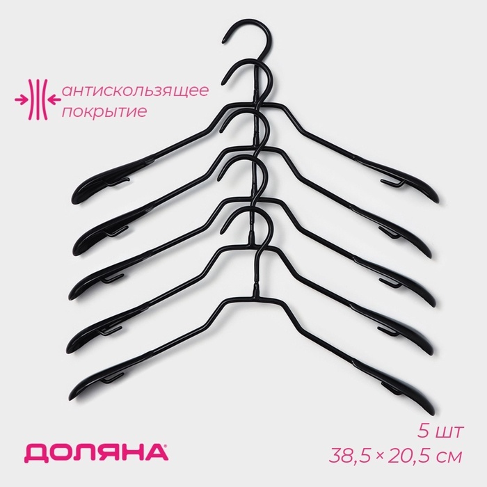 Плечики - вешалки для одежды Доляна, 38.5?20.5 см, 5 шт., антискользящее покрытие, чёрные