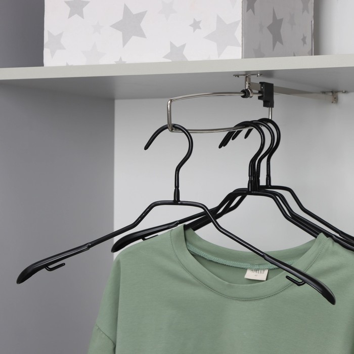 Плечики - вешалки для одежды Доляна, 38?40 см, многоуровневая, съёмные вешалки, антискользящее покрытие, чёрныеПлечики - вешалки для одежды Доляна, 38?40 см, многоуровневая, съёмные вешалки, антискользящее покрытие, чёрныеПлечики - вешалки для одежды Доляна, 38?40 см, многоуровневая, съёмные вешалки, антискользящее покрытие, чёрные