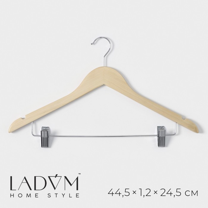 Плечики - вешалка для брюк и юбок LaDо?m Bois, 44.5?1.2?24.5 см, с зажимами, широкие плечики, сорт А, светлое дерево Вопросы по товару