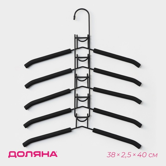 Плечики - вешалки для одежды Доляна, 38?40 см, многоуровневая, съёмные вешалки, антискользящее покрытие, чёрные