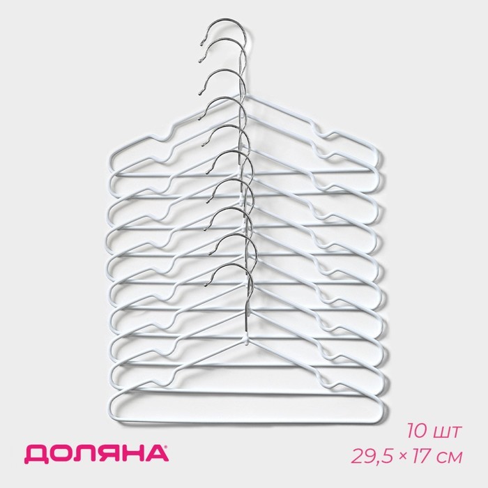 Вешалки для брюк и юбок Доляна, 29.5?13 см, 10 шт., с зажимами, цвет белый