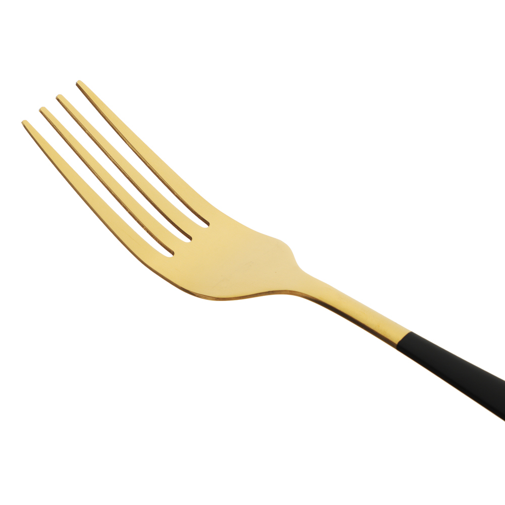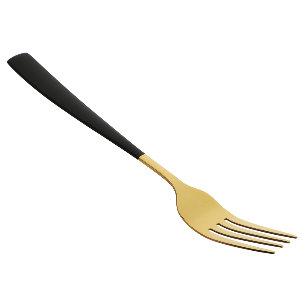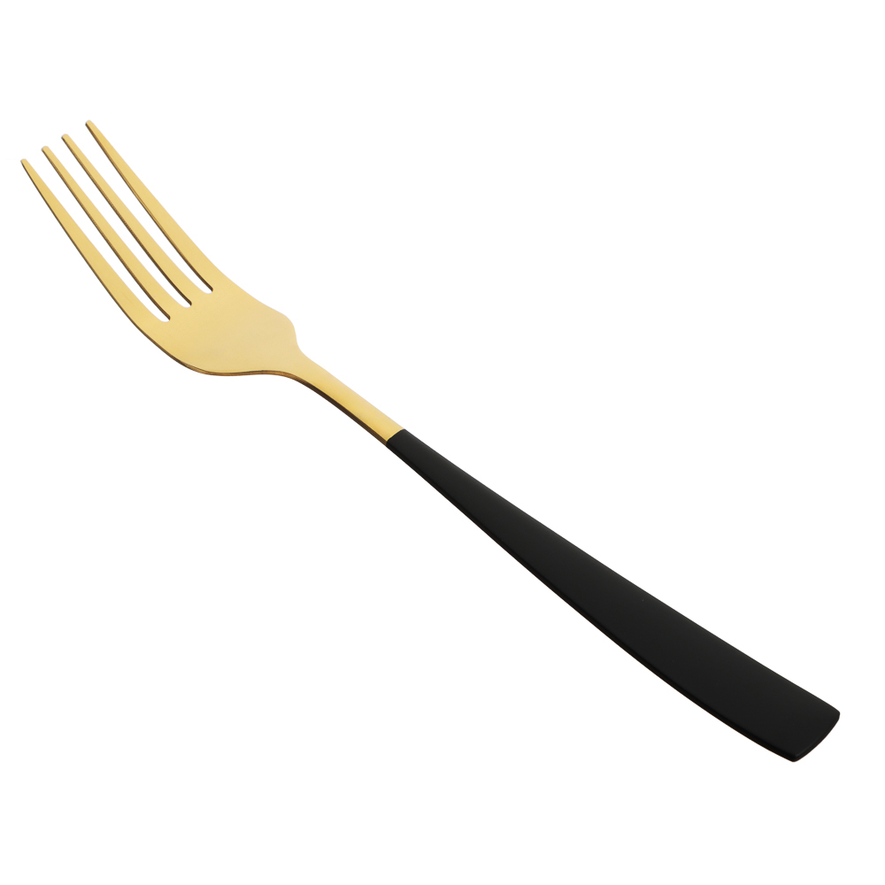 Столовая вилка SATOSHI Talinka – это качественный столовый прибор с роскошным дизайном, который станет настоящим украшением сервировки торжественного стола по особым случаям. Вилка изготовлена из прем... Показать описаниеиальной нержавеющей стали с двухцветным покрытием. Благородное сочетание черного и золотого цветов смотрится богато и выразительно, создавая яркие акценты в сервировке. Прекрасно смотрится на фоне белой или цветной скатерти и гармонично сочетается как с классическим белоснежным фарфоровым сервизом, так и с посудой других расцветок. Изделие не боится коррозии, устойчиво к образованию царапин, легко моется, не деформируется. 1 штука в наборе.