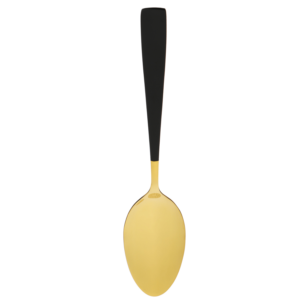 Столовая ложка SATOSHI Talinka изготовлена специально для эксклюзивной сервировки премиум класса для особых случаев и торжественных мероприятий. Выполненная из высококачественной нержавеющей стали, он... Показать описаниеа сочетает в себе безупречную функциональность и утонченный дизайн в благородной черно-золотой гамме. Прекрасно комбинируется с белой и цветной посудой, а также со столовым текстилем различных стилей и расцветок. Изделие устойчиво к образованию царапин, не боится коррозии и не подвержено деформации. Станет прекрасным дополнением комплекта столового сервиза.
