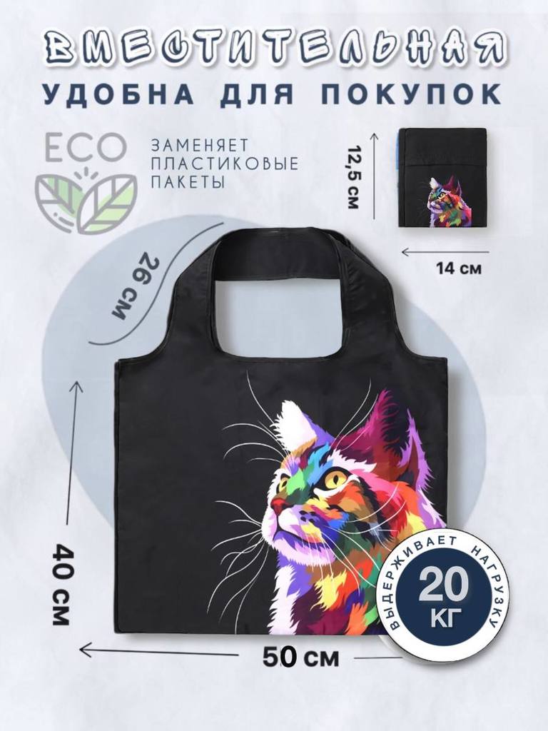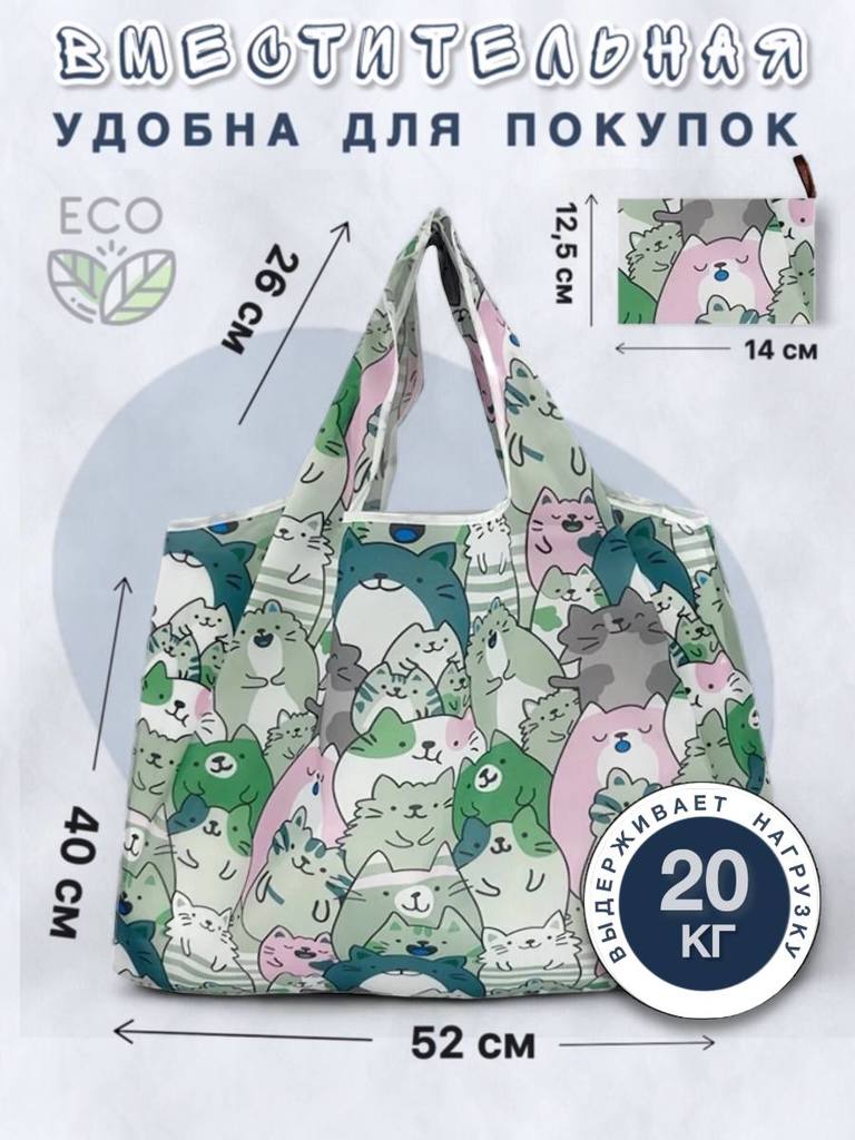 05501 Ветер перемен | Складная сумка для покупок "Много котиков", р-р 52х40 (большая)Вопросы по товару