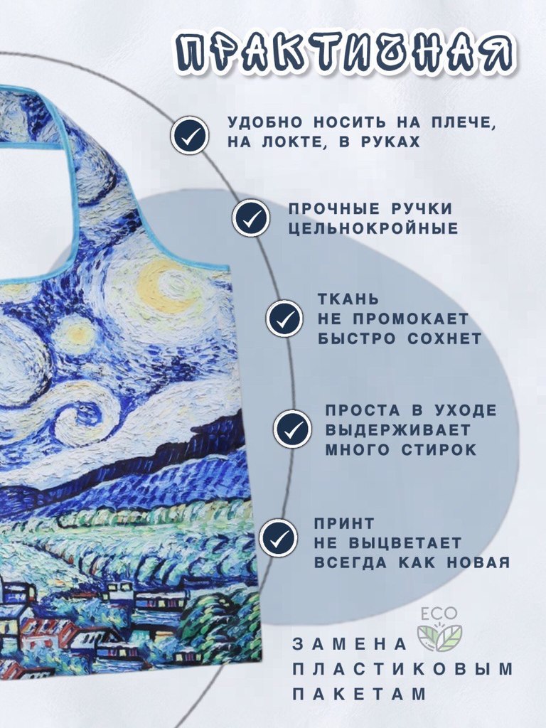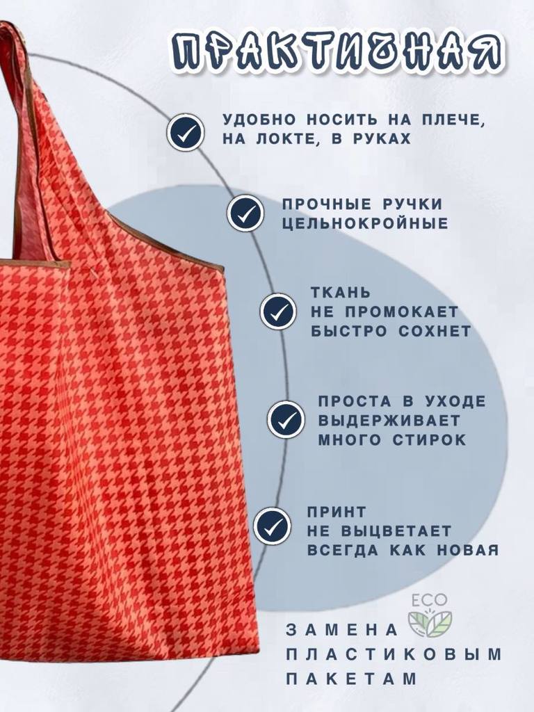 Объем: от 20 литров Вес изделия: 0,04 Размер сумки: 50х40см Высота ручек: 26см Производитель- Yiwu Lunzhu Luggage Co.,Ltd/Адрес: Yiwu Lunzhu Luggage Co.,Ltd/Адрес- 103,ул.Бэйюань, город Иу, городской ... Показать описаниеокруг Цзиньхуа, провинция Чжэцзян Материал: 100% полиэстер (оксфорд 210D) Размер сложенной сумки: 12,5х14см Создано для вас и планеты Заменяя ненужные одноразовые пакеты на долговечные сумки многоразового использования, мы защищаем нашу планету от загрязнения и сохраняем ее красоту для будущих поколений. Выберите свою любимую сумку, и берите ее с собой куда угодно, каждый день, год за годом, помогая спасти нашу планету и океаны от пластикового мусора! Используйте ее как любимую сумку для прогулок: в парке, на пляже, в бассейне, в путешествиях. Идеально для похода в театр или на любые другие мероприятия, где необходимо сдать уличную обувь в гардероб. * Большие по размеру, но красиво и аккуратно складываются в конверт. * Не занимают много места. Легко поместится в кармане дамской сумочки. * Легкая в уходе. Можно стирать в машинке на режиме "синтетика" * Яркая расцветка - принт не побледнеет после многочисленных стирок. * Долго прослужит. Прочная ткань оксфорд 210D