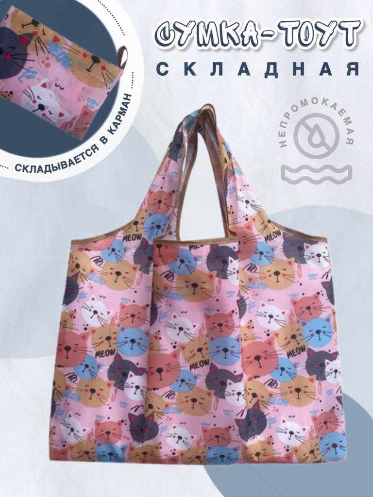 18891 Ветер перемен | Складная сумка для покупок "Котики MEOW на розовом", р-р 40х40см/25см (средняя)Вопросы по товару