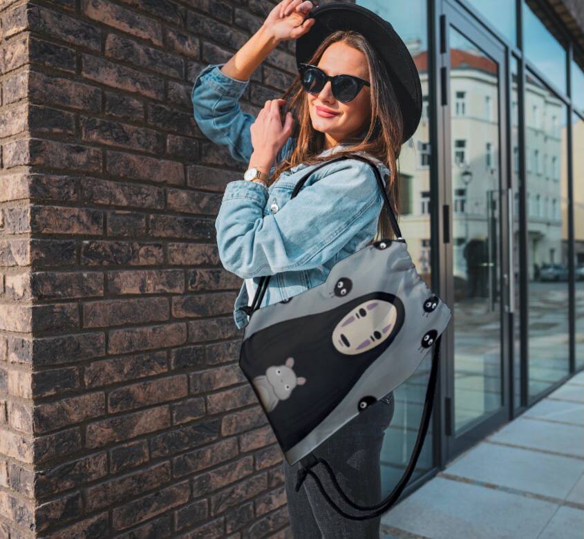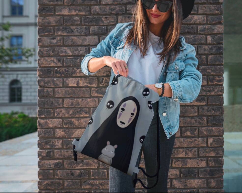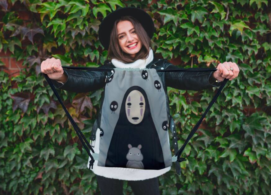 62061 Мир Миядзаки | Унесенные призраками | Рюкзак текстильный "Безликий", р-р 39х32 (серо-голубой)Вопросы по товару