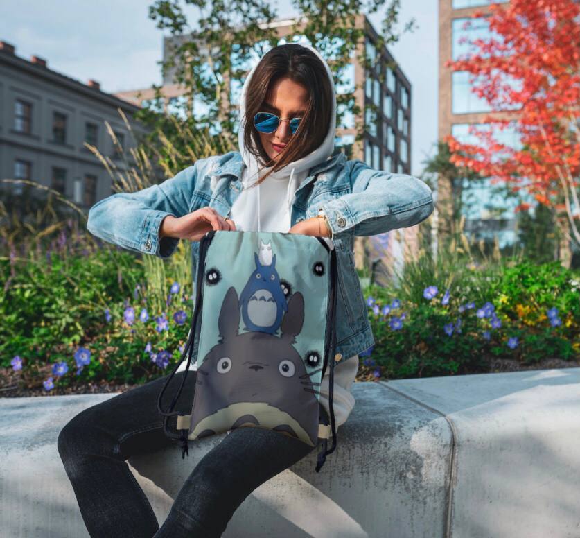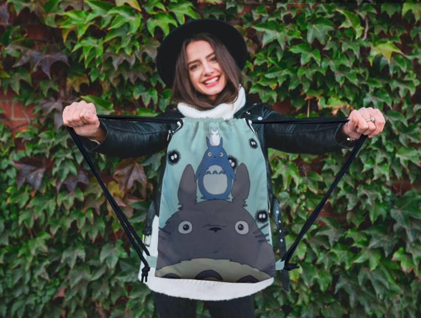 62047 Мир Миядзаки | Рюкзак текстильный "С Тоторо под дождем", р-р 39х32 (черный)Вопросы по товару