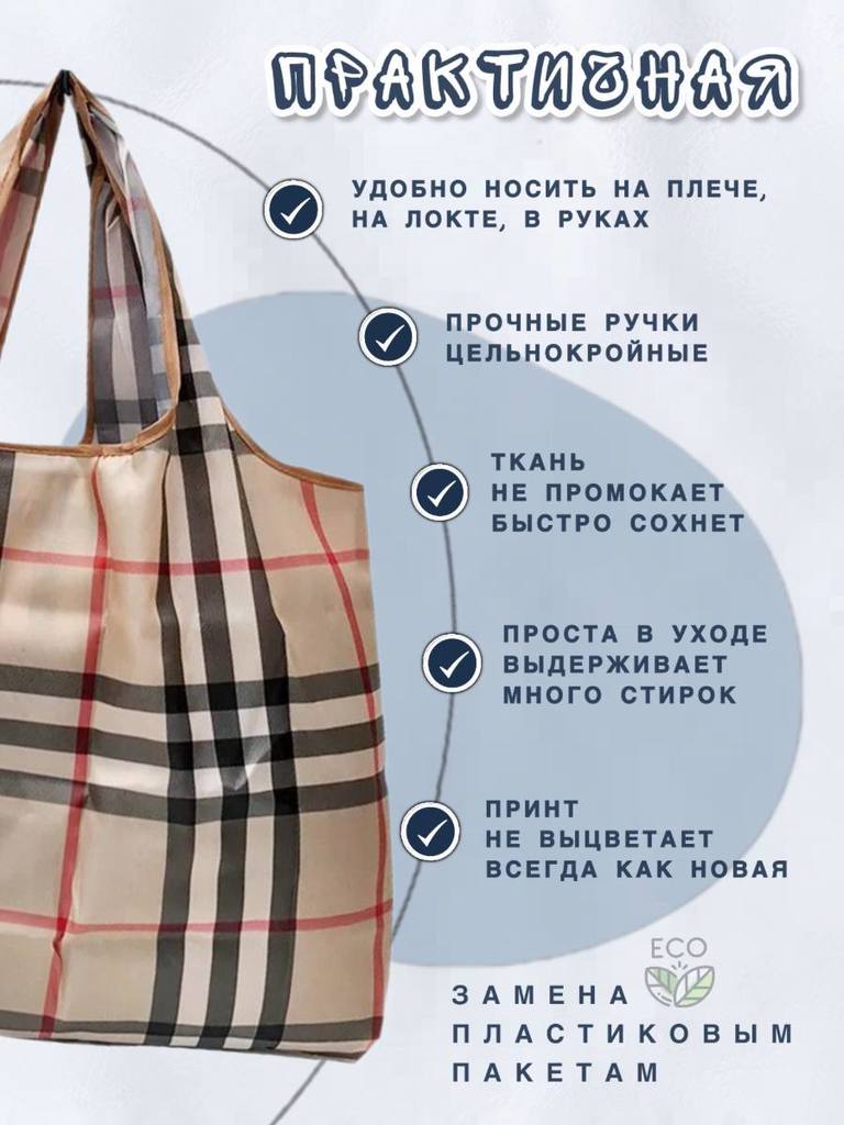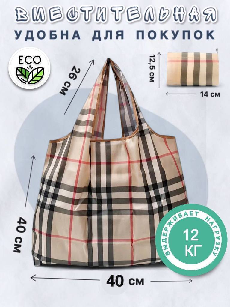 26063 Ветер перемен | Складная сумка для покупок "В стиле BURбери", р-р 40х40см (клетка)Вопросы по товару