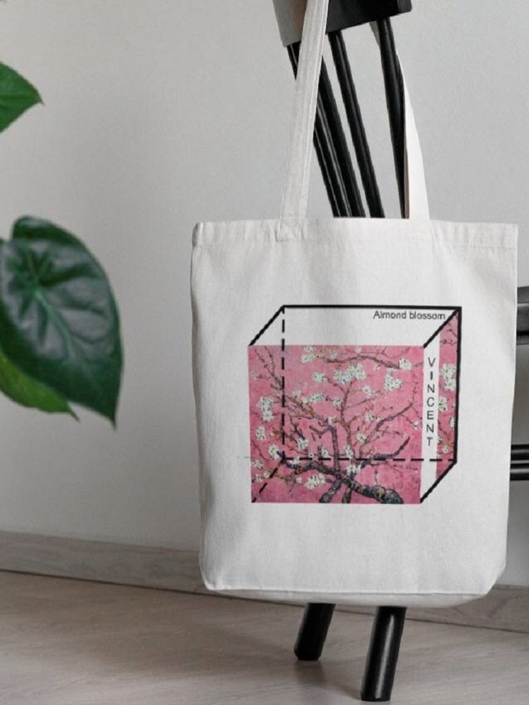 67073 Винсент ван Гог "Миндальная ветка" | Сумка-шоппер на молнии, с внутренним карманом, р-р 38х34см/ высота ручек 27см (бежевый лен(розовый)Вопросы по товару