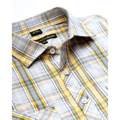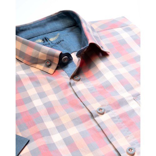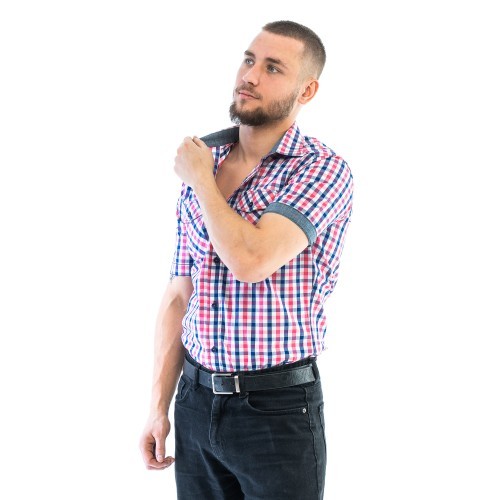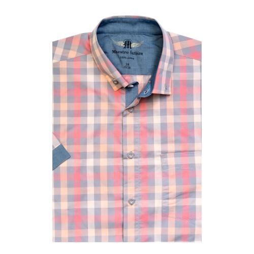 Хлопковая мужская рубашка с коротким рукавом. Силуэт приталенный с вытачками на спинке. Застежка на пуговицах. Воротник мягкий. На груди накладной краман. Состав: 100% хлопок. Легкая, дышащая ткань по... Показать описаниезволяет мужчине чувствовать себя комфортно в течение всего дня. Пестротканый материал в клетку. Контрастная отделка тканью из денима внутри ворота, манжет и по внутренней планке добавляет рубашке практичности. Цвет: серый, коралловый. Ищете качественную рубашку для вашего мужчины? Обратите внимание на нашу мужскую рубашку из хлопка от российского бренда Maestro Fashion. Рубашка идеально подойдет как для повседневного использования, так и для торжественных случаев, для мужчины, юноши, подростка. Кроме того, она прекрасно сочетается с брюками или джинсами, создавая стильный и модный образ. Можно носить как на выпуск, так и в заправленном виде. Молодежная рубашка доступна по демократичной цене, что делает ее доступной для каждого покупателя. Не упустите возможность приобрести эту качественную и стильную вещь для гардероба вашего мужчины. Наша компания предлагает быструю доставку по всей стране. Вы можете выбрать подходящий размер из нашего широкого ассортимента. Закажите мужскую приталенную модную сорочку прямо сейчас и наслаждайтесь ее качеством и стилем!