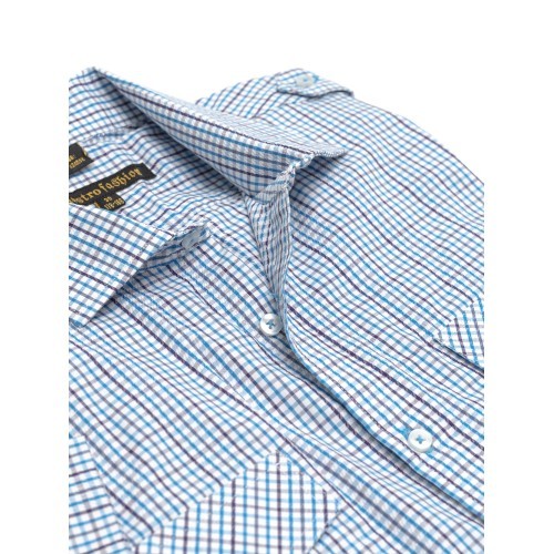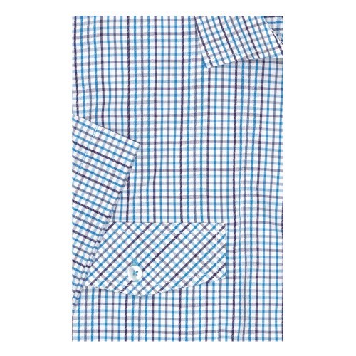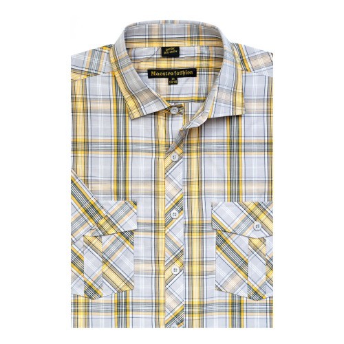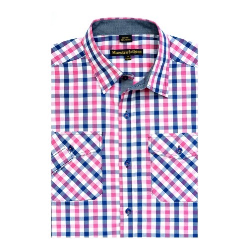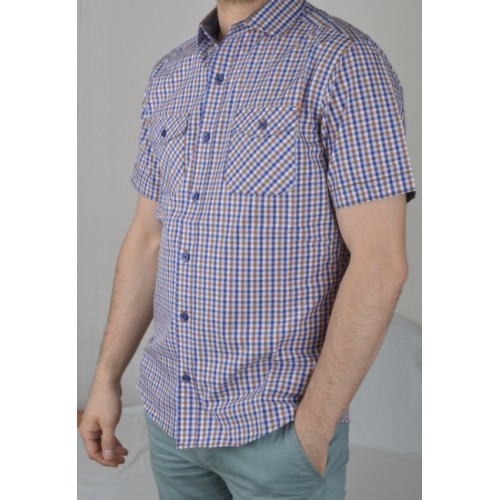 Хлопковая мужская рубашка с коротким рукавом. Силуэт приталенный с вытачками на спинке. Застежка на пуговицах. Воротник мягкий. На груди два накладных кармана. Состав: 100% хлопок. Дышащая ткань позво... Показать описаниеляет мужчине чувствовать себя комфортно в течение всего дня. Пестротканый материал в клетку. Контрастная отделка тканью из денима внутри ворота, манжет и по внутренней планке добавляет рубашке практичности. Цвет: синий, коричневый, белый. Ищете качественную рубашку для вашего мужчины? Обратите внимание на нашу мужскую рубашку из хлопка от российского бренда Maestro Fashion. Рубашка идеально подойдет как для повседневного использования, так и для торжественных случаев, для мужчины, юноши, подростка. Кроме того, она прекрасно сочетается с брюками или джинсами, создавая стильный и модный образ. Можно носить как на выпуск, так и в заправленном виде. Молодежная рубашка доступна по демократичной цене, что делает ее доступной для каждого покупателя. Не упустите возможность приобрести эту качественную и стильную вещь для гардероба вашего мужчины. Наша компания предлагает быструю доставку по всей стране. Вы можете выбрать подходящий размер из нашего широкого ассортимента. Закажите мужскую приталенную модную сорочку прямо сейчас и наслаждайтесь ее качеством и стилем!