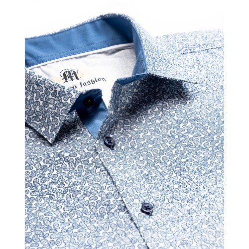 Хлопковая мужская рубашка с коротким рукавом. Силуэт приталенный с вытачками на спинке. Застежка на пуговицах. Воротник мягкий. Состав: 100% хлопок. Дышащая ткань позволяет мужчине чувствовать себя ко... Показать описаниемфортно в течение всего дня. Принт на ткани "турецкий огурец". Контрастная отделка внутри ворота, манжет и по внутренней планке добавляет рубашке практичности. Цвет: синий. Ищете качественную рубашку для вашего мужчины? Обратите внимание на нашу мужскую рубашку из хлопка от российского бренда Maestro Fashion. Рубашка идеально подойдет как для повседневного использования, так и для торжественных случаев, для мужчины, юноши, подростка. Кроме того, она прекрасно сочетается с брюками или джинсами, создавая стильный и модный образ. Можно носить как на выпуск, так и в заправленном виде. Молодежная рубашка доступна по демократичной цене, что делает ее доступной для каждого покупателя. Не упустите возможность приобрести эту качественную и стильную вещь для гардероба вашего мужчины. Наша компания предлагает быструю доставку по всей стране. Вы можете выбрать подходящий размер из нашего широкого ассортимента. Закажите мужскую приталенную модную сорочку прямо сейчас и наслаждайтесь ее качеством и стилем!