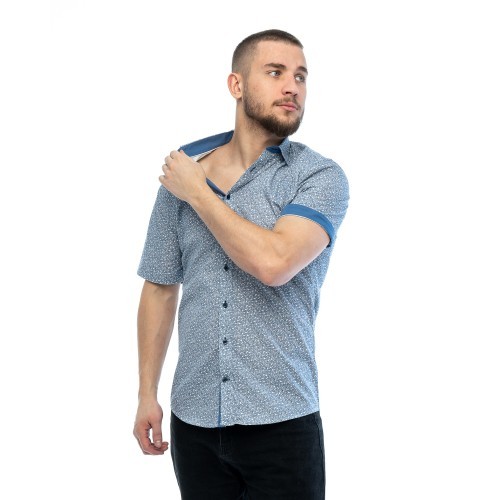 Хлопковая мужская рубашка с коротким рукавом. Силуэт приталенный с вытачками на спинке. Застежка на пуговицах. Воротник мягкий. На груди два накладных кармана с клапанами. Состав: 100% хлопок. Дышащая... Показать описание ткань с красивым принтом позволяет мужчине чувствовать себя комфортно в течение всего дня. Контрастная отделка внутри ворота, манжет и по внутренней планке добавляет рубашке практичности. Цвет: голубой. Ищете качественную рубашку для вашего мужчины? Обратите внимание на нашу мужскую рубашку из хлопка от российского бренда Maestro Fashion. Рубашка идеально подойдет как для повседневного использования, так и для торжественных случаев, для мужчины, юноши, подростка. Кроме того, она прекрасно сочетается с брюками или джинсами, создавая стильный и модный образ. Можно носить как на выпуск, так и в заправленном виде. Молодежная рубашка доступна по демократичной цене, что делает ее доступной для каждого покупателя. Не упустите возможность приобрести эту качественную и стильную вещь для гардероба вашего мужчины. Наша компания предлагает быструю доставку по всей стране. Вы можете выбрать подходящий размер из нашего широкого ассортимента. Закажите мужскую приталенную модную сорочку прямо сейчас и наслаждайтесь ее качеством и стилем!