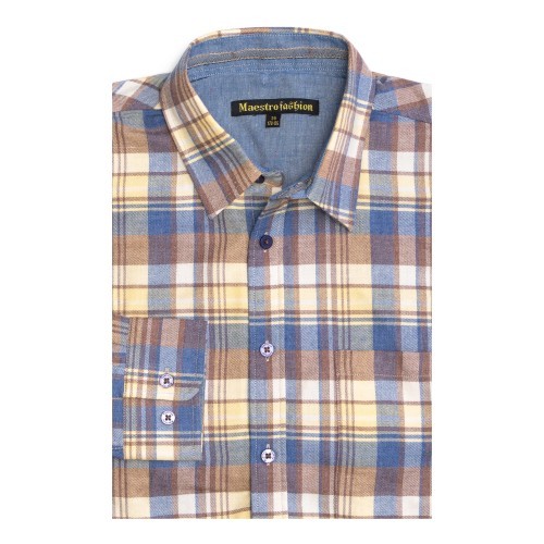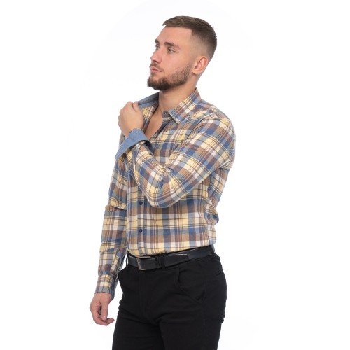 Хлопковая мужская рубашка с длинным рукавом. Силуэт приталенный с вытачками на спинке. Застежка на пуговицах. Воротник мягкий. На груди накладной карман. Состав: 65% хлопок/35% полиэстер. Цвет голубой... Показать описание, бежевый. Дышащая ткань из фланели позволяет мужчине чувствовать себя комфортно в течение всего дня. Пестротканый материал в голубую/бежевую/коричневую/желтую клетку. Ищете качественную рубашку для вашего мужчины? Обратите внимание на нашу мужскую рубашку из хлопка от российского бренда Maestro Fashion. Рубашка идеально подойдет как для повседневного использования, так и для торжественных случаев, для мужчины, юноши, подростка. Кроме того, она прекрасно сочетается с брюками или джинсами, создавая стильный и модный образ. Можно носить как на выпуск, так и в заправленном виде. Молодежная рубашка доступна по демократичной цене, что делает ее доступной для каждого покупателя. Не упустите возможность приобрести эту качественную и стильную вещь для гардероба вашего мужчины. Наша компания предлагает быструю доставку по всей стране. Вы можете выбрать подходящий размер из нашего широкого ассортимента. Закажите мужскую приталенную модную сорочку прямо сейчас и наслаждайтесь ее качеством и стилем!