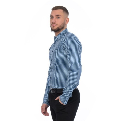 Хлопковая мужская рубашка с длинным рукавом. Силуэт приталенный с вытачками на спинке. Застежка на пуговицах. Воротник мягкий. На груди накладной карман. Состав: 100% хлопок. Дышащая ткань позволяет м... Показать описаниеужчине чувствовать себя комфортно в течение всего дня. Пестротканый материал в мелкую сине-коралловую клетку. Заплатки на локтях добавляют рубашке практичности. Ищете качественную рубашку для вашего мужчины? Обратите внимание на нашу мужскую рубашку из хлопка от российского бренда Maestro Fashion. Рубашка идеально подойдет как для повседневного использования, так и для торжественных случаев, для мужчины, юноши, подростка. Кроме того, она прекрасно сочетается с брюками или джинсами, создавая стильный и модный образ. Можно носить как на выпуск, так и в заправленном виде. Молодежная рубашка доступна по демократичной цене, что делает ее доступной для каждого покупателя. Не упустите возможность приобрести эту качественную и стильную вещь для гардероба вашего мужчины. Наша компания предлагает быструю доставку по всей стране. Вы можете выбрать подходящий размер из нашего широкого ассортимента. Закажите мужскую приталенную модную сорочку прямо сейчас и наслаждайтесь ее качеством и стилем!
