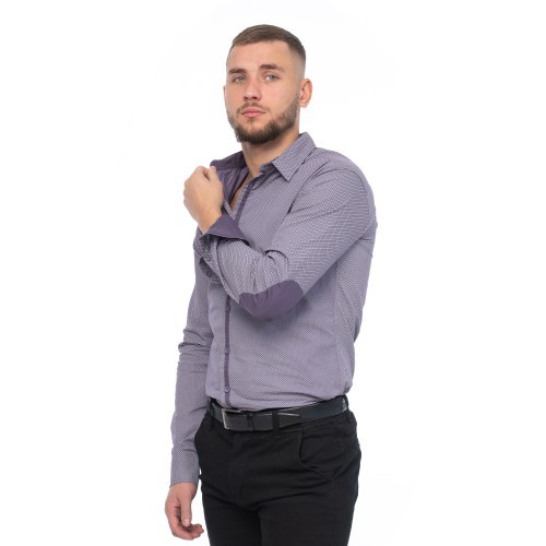 Хлопковая мужская рубашка с длинным рукавом. Силуэт приталенный с вытачками на спинке. Застежка на пуговицах. Воротник мягкий. Состав: 100% хлопок. Цвет бледно-фиолетовый. Дышащий материал позволяет м... Показать описаниеужчине чувствовать себя комфортно в течение всего дня. Мелкий принтованный рисунок на ткани. Заплатки на локтях добавляют рубашке практичности. Ищете качественную рубашку для вашего мужчины? Обратите внимание на нашу мужскую рубашку из хлопка от российского бренда Maestro Fashion. Рубашка идеально подойдет как для повседневного использования, так и для торжественных случаев, для мужчины, юноши, подростка. Кроме того, она прекрасно сочетается с брюками или джинсами, создавая стильный и модный образ. Можно носить как на выпуск, так и в заправленном виде. Молодежная рубашка доступна по демократичной цене, что делает ее доступной для каждого покупателя. Не упустите возможность приобрести эту качественную и стильную вещь для гардероба вашего мужчины. Наша компания предлагает быструю доставку по всей стране. Вы можете выбрать подходящий размер из нашего широкого ассортимента. Закажите мужскую приталенную модную сорочку прямо сейчас и наслаждайтесь ее качеством и стилем!
