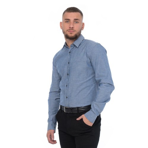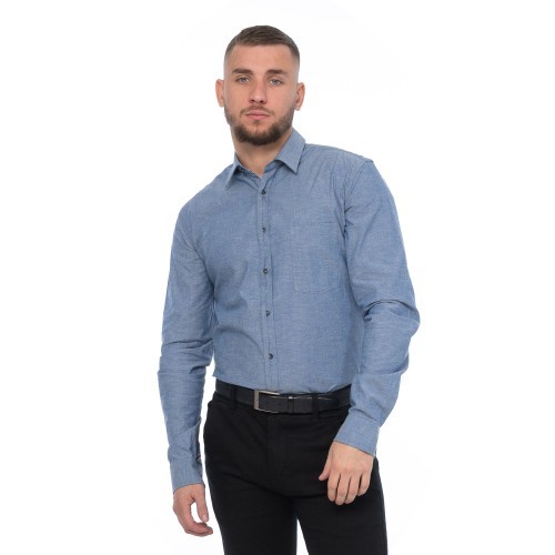 Хлопковая мужская рубашка с длинным рукавом. Силуэт приталенный с вытачками на спинке. Застежка на пуговицах. Воротник мягкий. На груди накладной карман. Состав: 100% хлопок. Цвет голубой. Дышащий мат... Показать описаниеериал из денима позволяет мужчине чувствовать себя комфортно в течение всего дня. Ищете качественную рубашку для вашего мужчины? Обратите внимание на нашу мужскую рубашку из хлопка от российского бренда Maestro Fashion. Рубашка идеально подойдет как для повседневного использования, так и для торжественных случаев, для мужчины, юноши, подростка. Кроме того, она прекрасно сочетается с брюками или джинсами, создавая стильный и модный образ. Можно носить как на выпуск, так и в заправленном виде. Молодежная рубашка доступна по демократичной цене, что делает ее доступной для каждого покупателя. Не упустите возможность приобрести эту качественную и стильную вещь для гардероба вашего мужчины. Наша компания предлагает быструю доставку по всей стране. Вы можете выбрать подходящий размер из нашего широкого ассортимента. Закажите мужскую приталенную модную сорочку прямо сейчас и наслаждайтесь ее качеством и стилем!