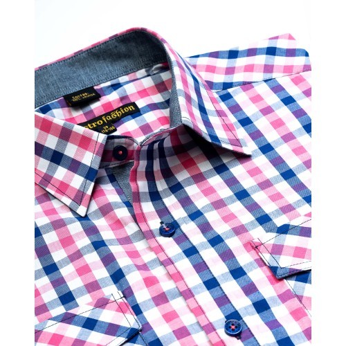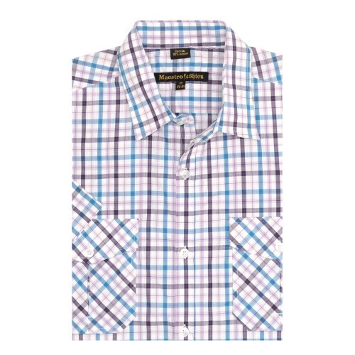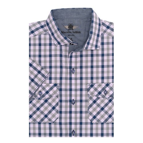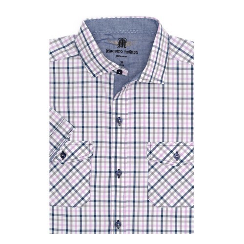 Хлопковая мужская рубашка с коротким рукавом. Силуэт приталенный с вытачками на спинке. Застежка на пуговицах. Воротник мягкий. На груди два накладных кармана. Состав: 100% хлопок. Дышащая ткань позво... Показать описаниеляет мужчине чувствовать себя комфортно в течение всего дня. Пестротканый материал в клетку. Контрастная отделка тканью из денима внутри ворота, манжет и по внутренней планке добавляет рубашке практичности. Цвет: синий, фиолетовый, серый. Ищете качественную рубашку для вашего мужчины? Обратите внимание на нашу мужскую рубашку из хлопка от российского бренда Maestro Fashion. Рубашка идеально подойдет как для повседневного использования, так и для торжественных случаев, для мужчины, юноши, подростка. Кроме того, она прекрасно сочетается с брюками или джинсами, создавая стильный и модный образ. Можно носить как на выпуск, так и в заправленном виде. Молодежная рубашка доступна по демократичной цене, что делает ее доступной для каждого покупателя. Не упустите возможность приобрести эту качественную и стильную вещь для гардероба вашего мужчины. Наша компания предлагает быструю доставку по всей стране. Вы можете выбрать подходящий размер из нашего широкого ассортимента. Закажите мужскую приталенную модную сорочку прямо сейчас и наслаждайтесь ее качеством и стилем!
