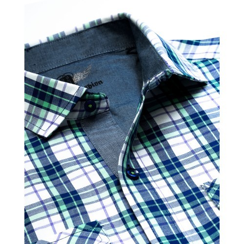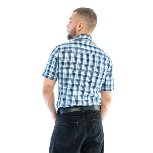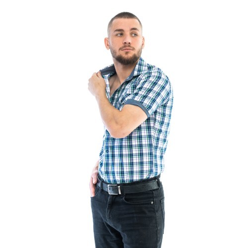 Хлопковая мужская рубашка с коротким рукавом. Силуэт приталенный с вытачками на спинке. Застежка на пуговицах. Воротник мягкий. На груди два накладных кармана. Состав: 100% хлопок. Дышащая ткань позво... Показать описаниеляет мужчине чувствовать себя комфортно в течение всего дня. Пестротканый материал в крупную клетку. Контрастная отделка тканью из денима внутри ворота, манжет и по внутренней планке добавляет рубашке практичности. Цвет: синий, салатовый. Ищете качественную рубашку для вашего мужчины? Обратите внимание на нашу мужскую рубашку из хлопка от российского бренда Maestro Fashion. Рубашка идеально подойдет как для повседневного использования, так и для торжественных случаев, для мужчины, юноши, подростка. Кроме того, она прекрасно сочетается с брюками или джинсами, создавая стильный и модный образ. Можно носить как на выпуск, так и в заправленном виде. Молодежная рубашка доступна по демократичной цене, что делает ее доступной для каждого покупателя. Не упустите возможность приобрести эту качественную и стильную вещь для гардероба вашего мужчины. Наша компания предлагает быструю доставку по всей стране. Вы можете выбрать подходящий размер из нашего широкого ассортимента. Закажите мужскую приталенную модную сорочку прямо сейчас и наслаждайтесь ее качеством и стилем!