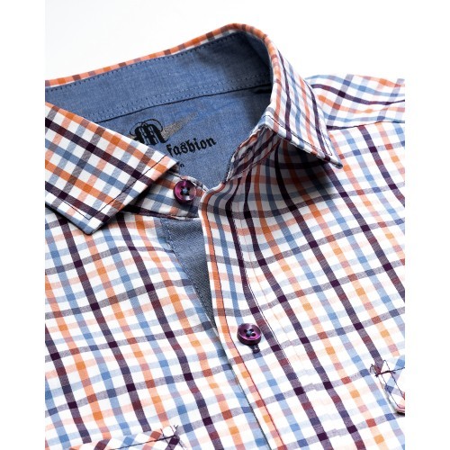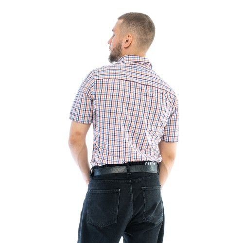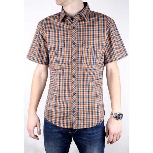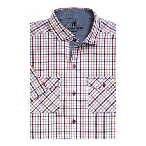 Хлопковая мужская рубашка с коротким рукавом. Силуэт приталенный с вытачками на спинке. Застежка на пуговицах. Воротник мягкий. На груди два накладных кармана. Состав: 100% хлопок. Дышащая ткань позво... Показать описаниеляет мужчине чувствовать себя комфортно в течение всего дня. Пестротканый материал в клетку. Контрастная отделка тканью из денима внутри ворота, манжет и по внутренней планке добавляет рубашке практичности. Цвет: синий, оранжевый, белый. Ищете качественную рубашку для вашего мужчины? Обратите внимание на нашу мужскую рубашку из хлопка от российского бренда Maestro Fashion. Рубашка идеально подойдет как для повседневного использования, так и для торжественных случаев, для мужчины, юноши, подростка. Кроме того, она прекрасно сочетается с брюками или джинсами, создавая стильный и модный образ. Можно носить как на выпуск, так и в заправленном виде. Молодежная рубашка доступна по демократичной цене, что делает ее доступной для каждого покупателя. Не упустите возможность приобрести эту качественную и стильную вещь для гардероба вашего мужчины. Наша компания предлагает быструю доставку по всей стране. Вы можете выбрать подходящий размер из нашего широкого ассортимента. Закажите мужскую приталенную модную сорочку прямо сейчас и наслаждайтесь ее качеством и стилем!