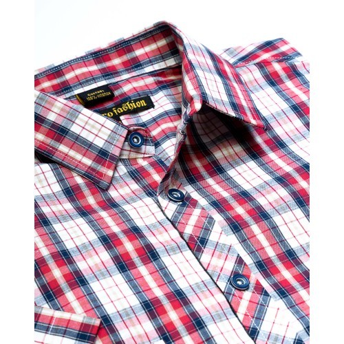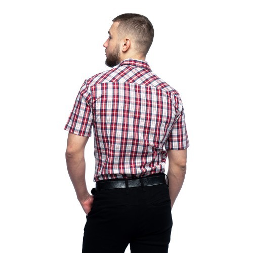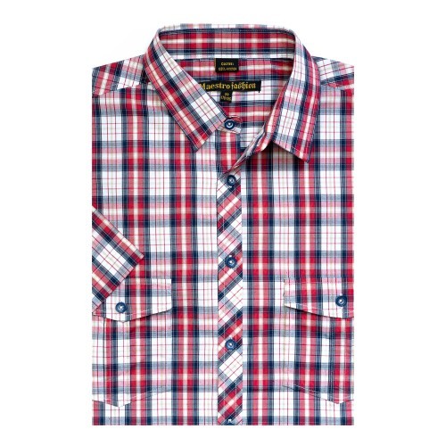 Хлопковая мужская рубашка с коротким рукавом. Силуэт приталенный с вытачками на спинке. Застежка на пуговицах. Воротник мягкий на пуговицах. На груди наклодной карман. Состав: 100% хлопок. Дышащая тка... Показать описаниень позволяет мужчине чувствовать себя комфортно в течение всего дня. Пестротканый материал в клетку. Контрастная отделка тканью из денима внутри ворота, манжет и по внутренней планке добавляет рубашке практичности. Цвет: красный, белый. Ищете качественную рубашку для вашего мужчины? Обратите внимание на нашу мужскую рубашку из хлопка от российского бренда Maestro Fashion. Рубашка идеально подойдет как для повседневного использования, так и для торжественных случаев, для мужчины, юноши, подростка. Кроме того, она прекрасно сочетается с брюками или джинсами, создавая стильный и модный образ. Можно носить как на выпуск, так и в заправленном виде. Молодежная рубашка доступна по демократичной цене, что делает ее доступной для каждого покупателя. Не упустите возможность приобрести эту качественную и стильную вещь для гардероба вашего мужчины. Наша компания предлагает быструю доставку по всей стране. Вы можете выбрать подходящий размер из нашего широкого ассортимента. Закажите мужскую приталенную модную сорочку прямо сейчас и наслаждайтесь ее качеством и стилем!